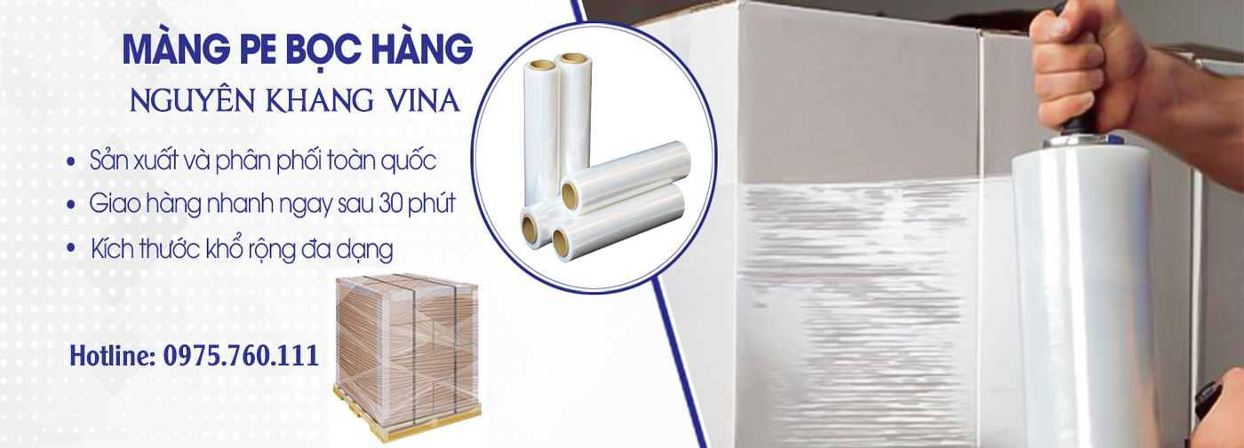 CÔNG TY TNHH SX VÀ TM NGUYÊN KHANG VINA Chuyên sản xuất Băng Dính, Màng PE, Túi PE , Dây Đai các loại vật tư phụ trợ đóng gói. Luôn để chất lượng sản phẩm lên hàng đầu và giá cả cực kỳ cạnh tranh.